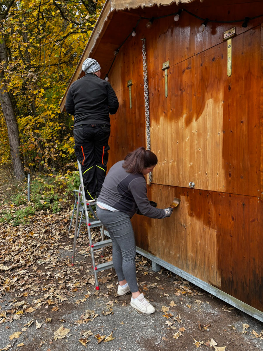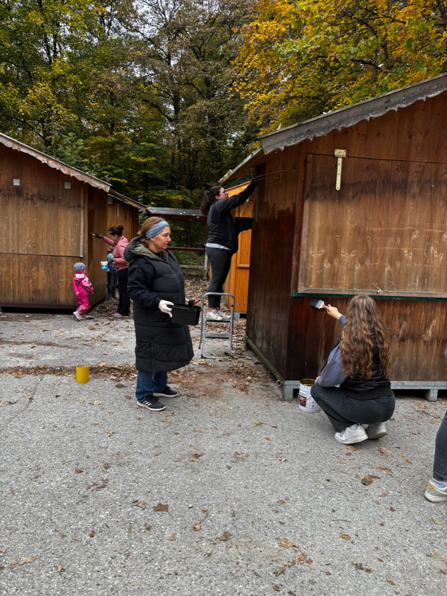 Am vergangenen Samstag haben unsere engagierten Mitglieder des Kinder Fördervereins gemeinsam die Hütten für unseren Christkindlmarkt gestrichen.